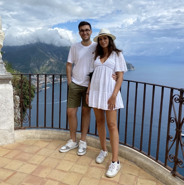 Ci siamo conosciuti ad inizio anno. Io al tempo vivevo a Madrid, ma spesso tornavo a Milano per festeggiare compleanni e lauree. Proprio a uno di questi eventi, il 24 Aprile 2022, è scoccata la scintilla! Da quel momento non abbiamo più smesso di sentirci e di pianificare ogni weekend libero per vederci in Italia o in Spagna. Il 2022 è stato anche l'anno della nostra prima vacanza insieme, proprio in Costiera, dove il 30 Maggio 2026 speriamo di festeggiare questo amore insieme a tutti voi!